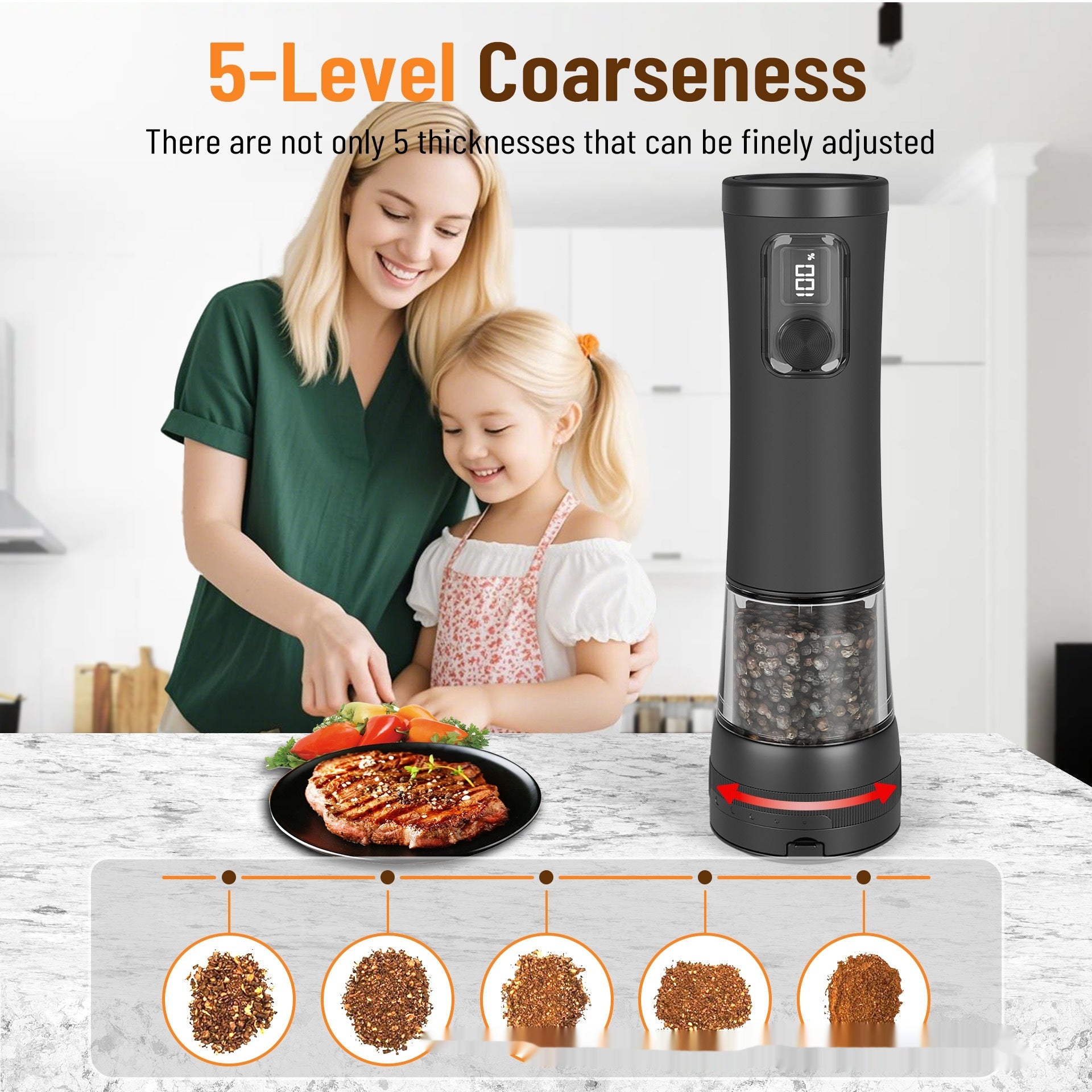 The Joy of Simplicity: Instead of struggling with manual grinders while your hands are busy cooking, the ease and accessibility of this electric grinder turn seasoning into a single moment of ease.